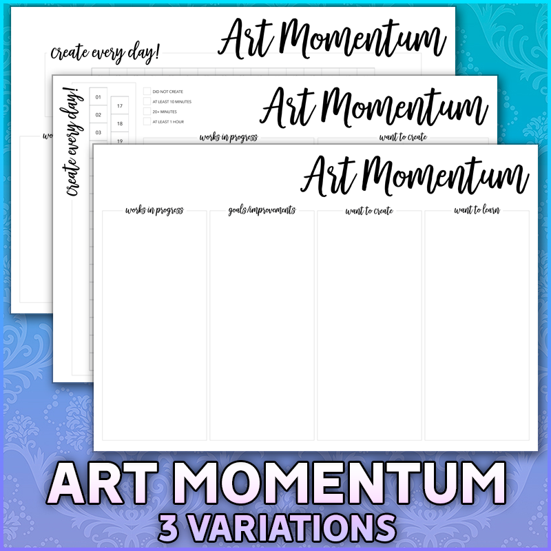 A pack of 3 digital bullet journal monthly spreads tailored specifically for artists, in both high-quality PNG and PDF format. Art Momentum is a way to track creating every day, which builds good habits.